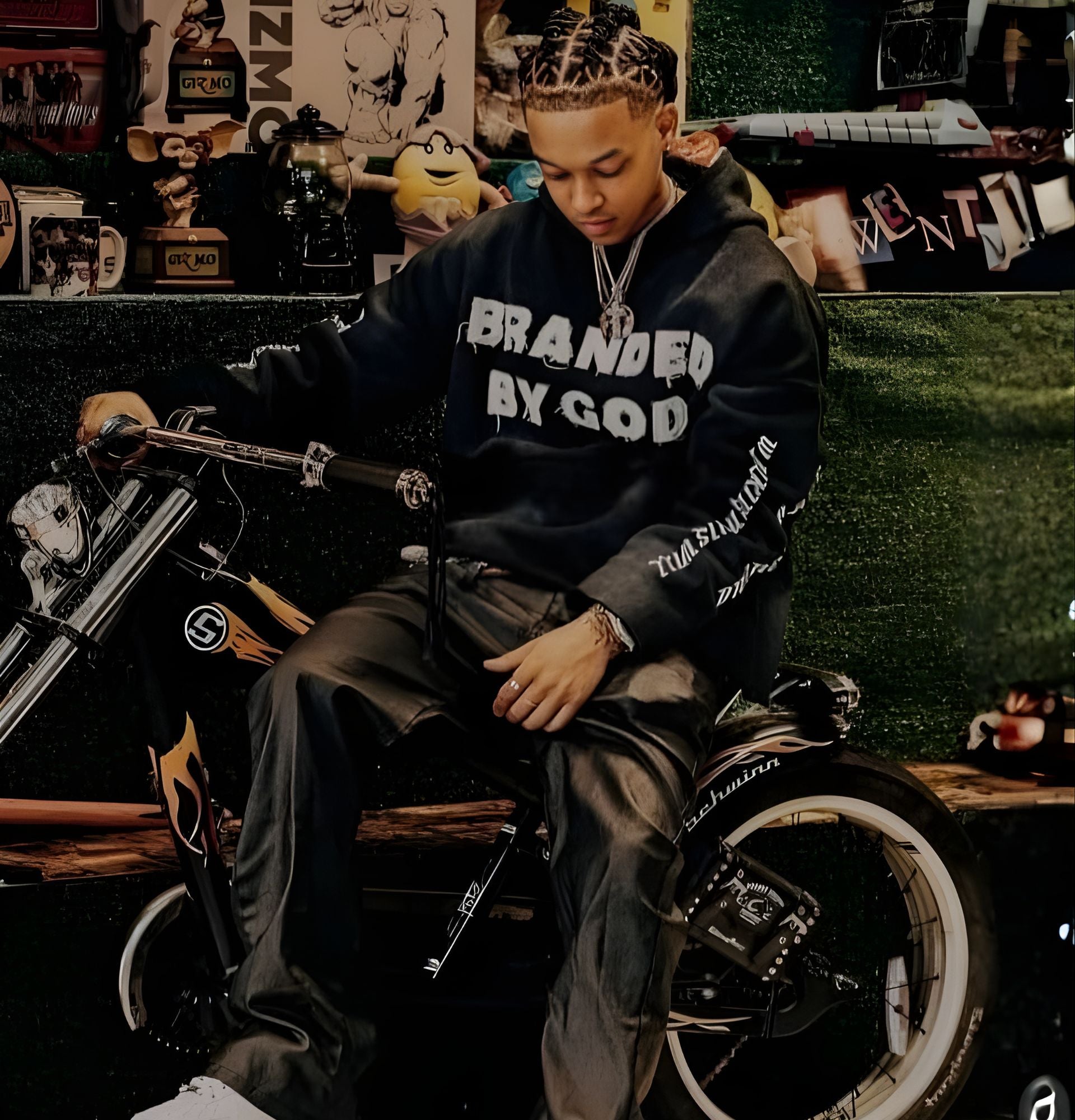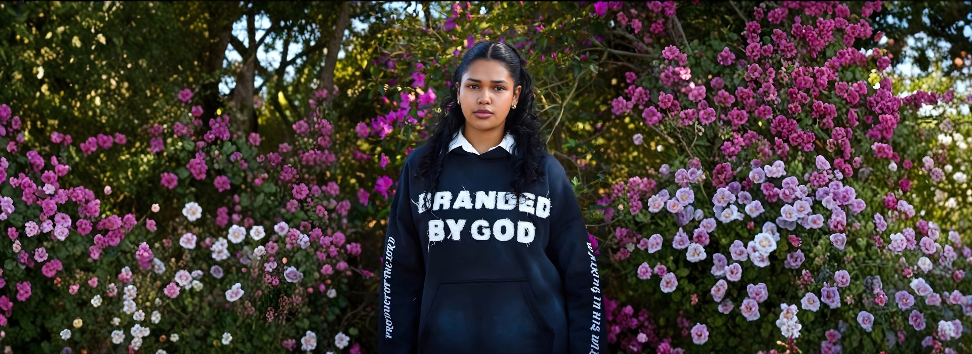 All black “Branded by God” hoodie French terry cotton